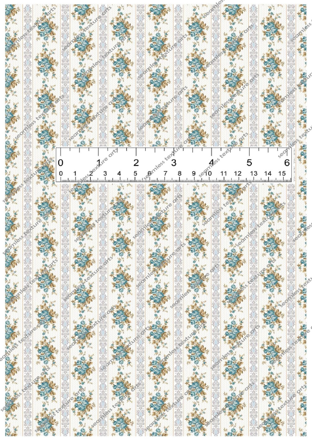 12th Miniature Vintage Blue Floral And Striped Pattern Wallpaper Seamless - Digital Printable Instant Download - A4 Printable Sheet for Dollhouses Model Homes School Projects DIY