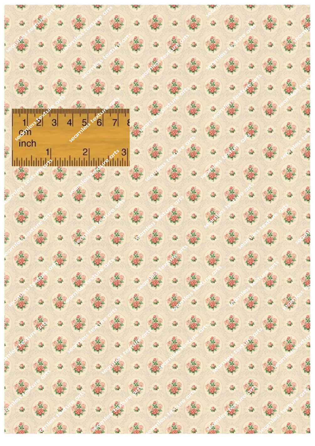 12th Miniature 1900s Classic Retro Vintage Red Tones Floral Wallpaper Seamless - Digital Printable Instant Download - A4 Printable Sheet for Dollhouses Model Homes School Projects DIY