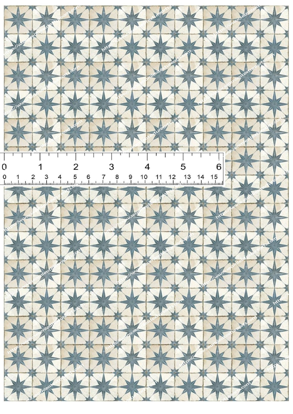 1:12 Miniature Old Damaged Blue Star Floor Tile Seamless - DIGITAL Printable Instant Download - A4 Printable Sheets for Dollhouses 3D Model Homes School Projects DIY