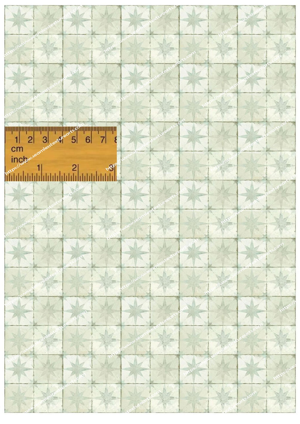 1:12 Miniature Old Pale Green Star Floor Tile Seamless - DIGITAL Printable Instant Download - A4 Printable Sheets for Dollhouses 3D Model Homes School Projects DIY